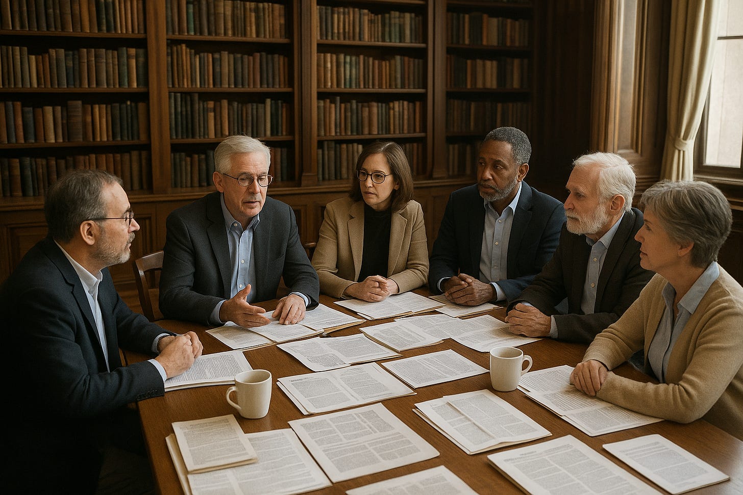 Setting: Clara’s townhouse, salon-style evening. Coffee cups steam, rain patters softly outside.